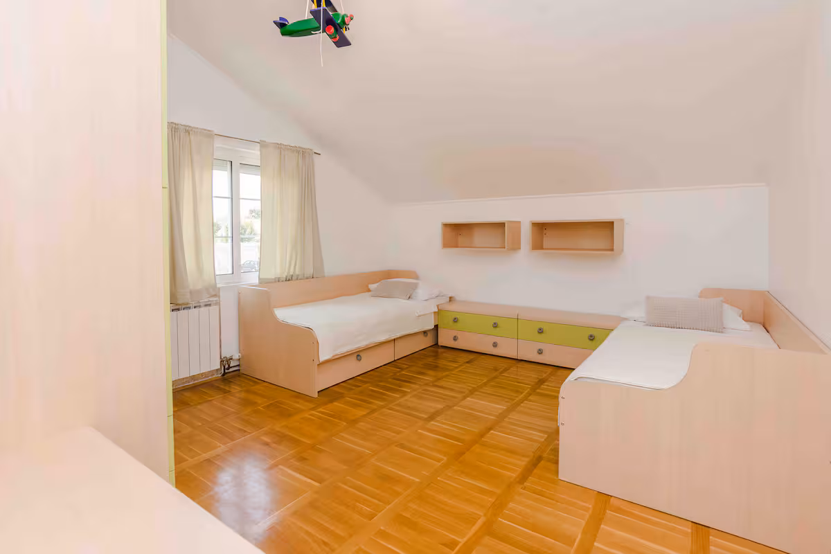 SPVAĆA SOBA krevet dimenzija 160 x 200 cm. Madrac koji jamči kvalitetan san. Antialergijski jastuci i posteljina.